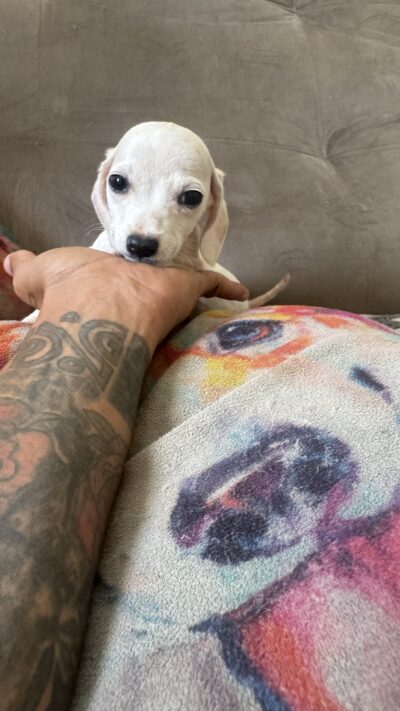 O Dachshund Piebald é uma variação de cor e padrão do Dachshund, também conhecido como “salsichinha”. O termo “Piebald” refere-se a um padrão de pelagem